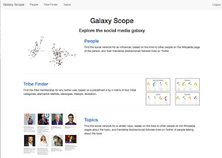 TransparencyEngine (previously called "GalaxyScope") is a new powerful and easy-to-use tool to find the most influential people about any topic on social media.