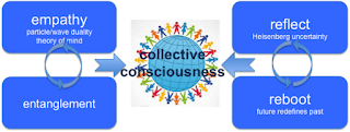 “Empathy” is the main driver for “entanglement”, which connects all living beings. “Entanglement” is the strong tie that for example every child has with his mother, or a husband to his wife, or that connects two best friends. Entanglement happens by reading the mind of the other, trying to guess what the other might be thinking right now. The more empathy one has, the better she is at this game. At the same time, living beings never stop to learn in a ceaseless feedback loop of “reflect and reboot”, re-assessing the status quo and adapting to it if necessary.