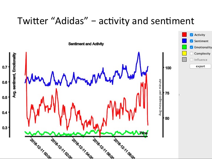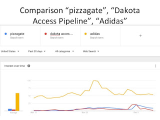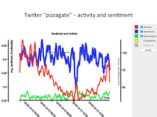 At the end of the 2016 US Presidential elections, in early November an even more absurd claim was made, accusing Hillary Clinton to run a pedophile ring out of a pizza restaurant in Washington. Called “pizzagate”, it became a favorite call to arms among right-wing extremists and Donald Trump supporters, leading one incensed fanatic to drive a few hundred miles from Salisbury, North Carolina to Washington DC, and firing his automatic gun in the pizza restaurant. As most of this rumor spreading was (and still is) happening on social media, I was curious to see if I could identify some discernible characteristics of fake news on Twitter and the Web, using our social mediaanalysis tool Condor and Coolhunting.