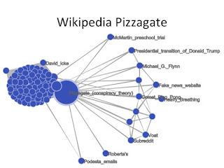 I started by creating the Wikipedia link map around the pizzagate article on Wikipedia. The network below shows the links of Pizzagate to Donald Trump, as well as to Michael Flynn, the son of a Trump campaign team member, who was dismissed after a tweet supporting the conspiracy theory.