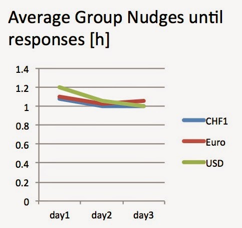 Such an unexpected event at the financial markets offers a unique natural experiment to measure global consciousness of financial markets. Using Condor, I collected the most recent 12,000 tweets containing the string “Swiss Franc”, as well as another 12,000 tweets each containing “Euro” and “USD” on January 18, when Francogeddon was still a major issue, and currencies were still fluctuating wildly. I repeated the data collection at two later points in time, on February 3 and February 6, 2015, when Francogeddon was over, and things had settled down. This 9-part dataset allows me to compare a moment of high public consciousness, when Francogeddon was at the top of everybody’s minds involved into currency trading with a baseline of two later points in time when the event was over and public consciousness should be low again.