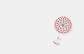 The large nodes at the the top and bottom end are the queries "Oakley" and "Google"