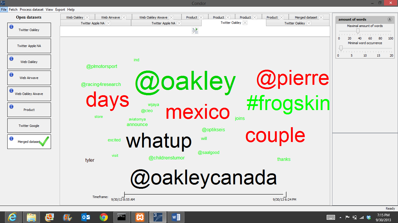 Using the software Condor and its capacity to interpret word sentiment I will explore the context and relationships between the 3 brands Apple, Google and Oakley on the Web. This approach is based on coolhunting the Web through qualitative data analysis.